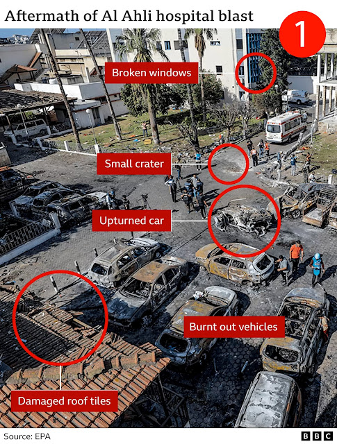 The BBC also had an interview with a university professor in Gaza who claimed to have seen the event. He claimed that yes, the missile had exploded and fallen to the ground but there was also an F16 or F35 in the area that fired a missile at roughly the same time and it was that missile that hit the Anglican Hospital in Gaza.